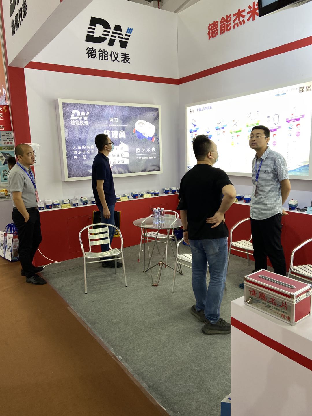 这次展会德能带来的有智能供水系统的预付费水表系列、远传水表系列、蓝牙水表系列、NB水表系列以及超声波流量计等,更有方便客户管理的升级产品——自助充值机和蓝牙读卡器,都受到了客户的广泛关注。关注的焦点当属德能仪表首发的蓝牙NB水表首次亮相大放异彩,这款新品是集蓝牙水表和NB水表的优势于一身,是二者的完美结合,受到客户高度关注和认可。如果你也对蓝牙NB水表感兴趣,来找小德要产品资料吧!